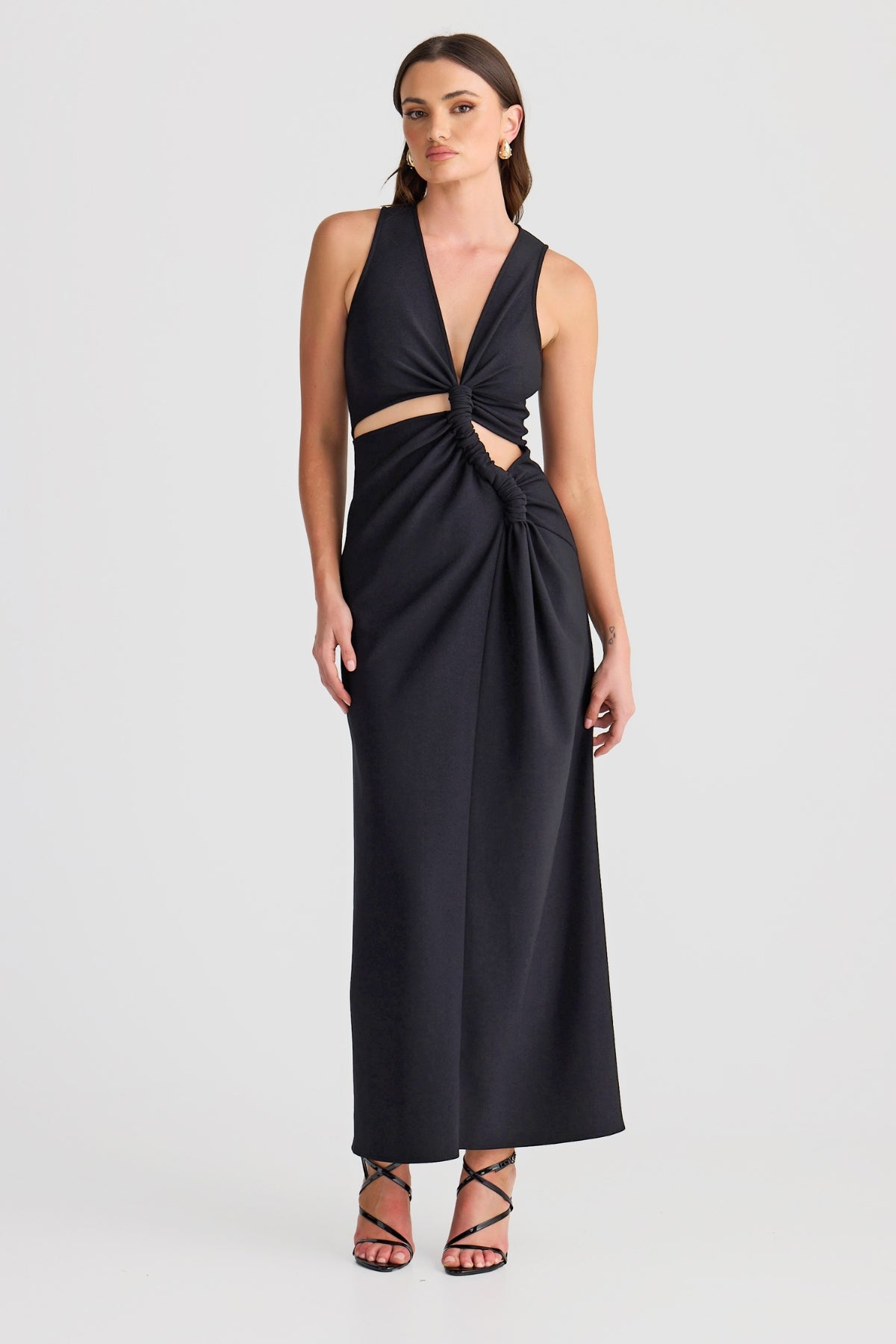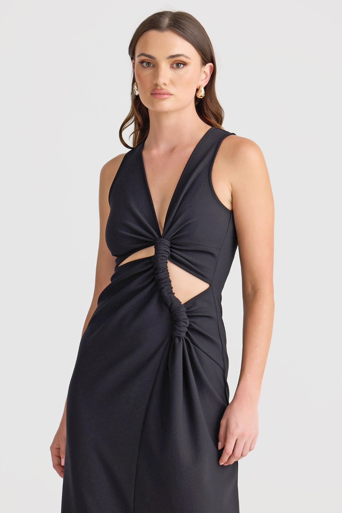 Adorned with a twist cut out statement, The Azzura Dress is simplistic yet eye catching. Constructed in our premium heavy weight and extreme stretch bonded crepe fabrication, this dress features a V shaped neckline, gathered twist detail with small cut outs. Wear to your next event with a sling back stiletto and minimalistic jewellery and let the dress do the talking!