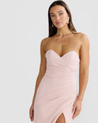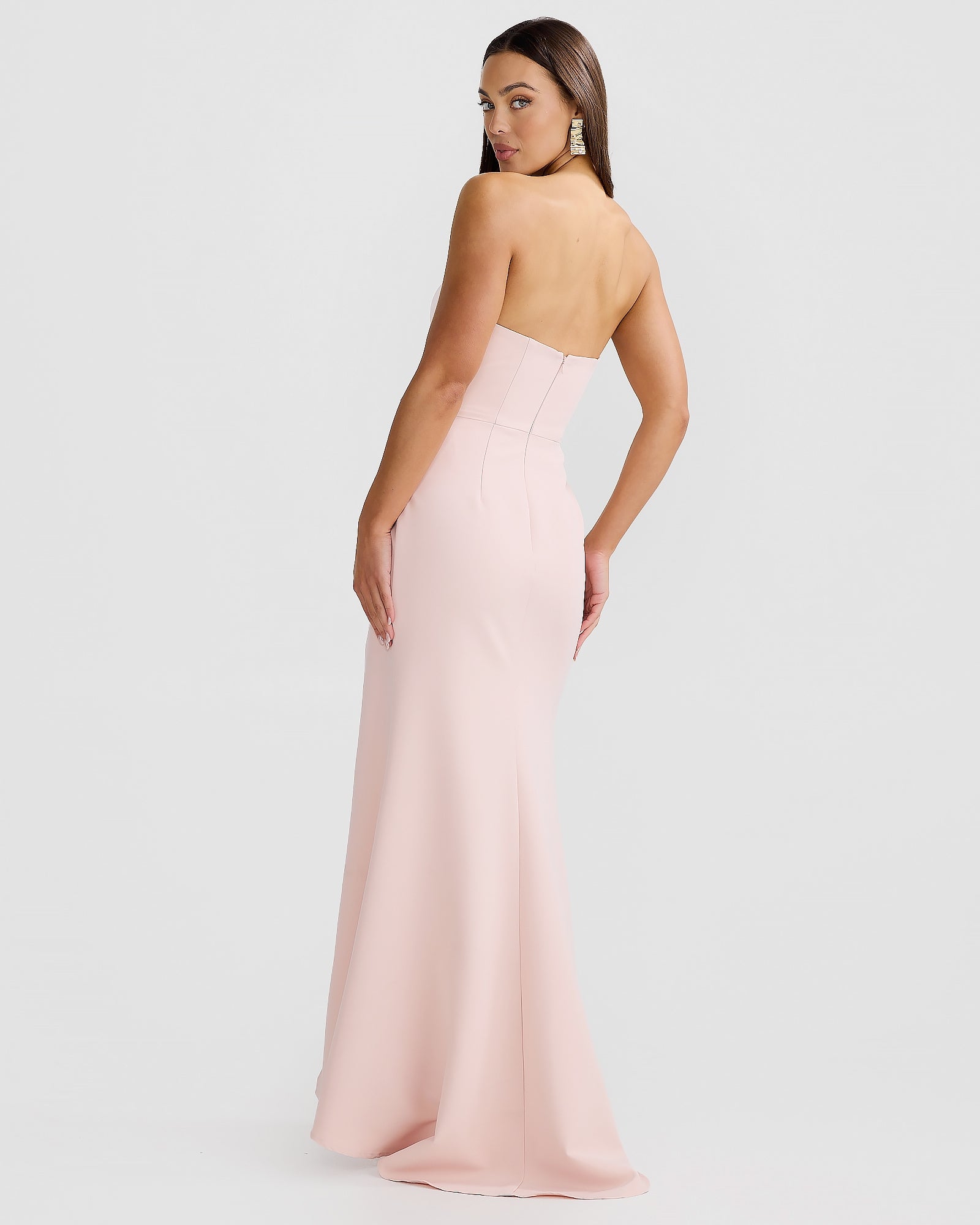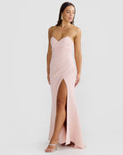 The Sierra Gown is a classic and modern evening silhouette. Featuring a sweetheart neckline that beautifully accentuates the décolletage, this gown is designed to fit and form the female shape. Tucks carefully placed by our artisans, creating a flattering silhouette for all shapes. The thigh slit adds a touch of allure, while the structured fabric ensures both comfort and style. Available in Powder Blue and Soft Pink.