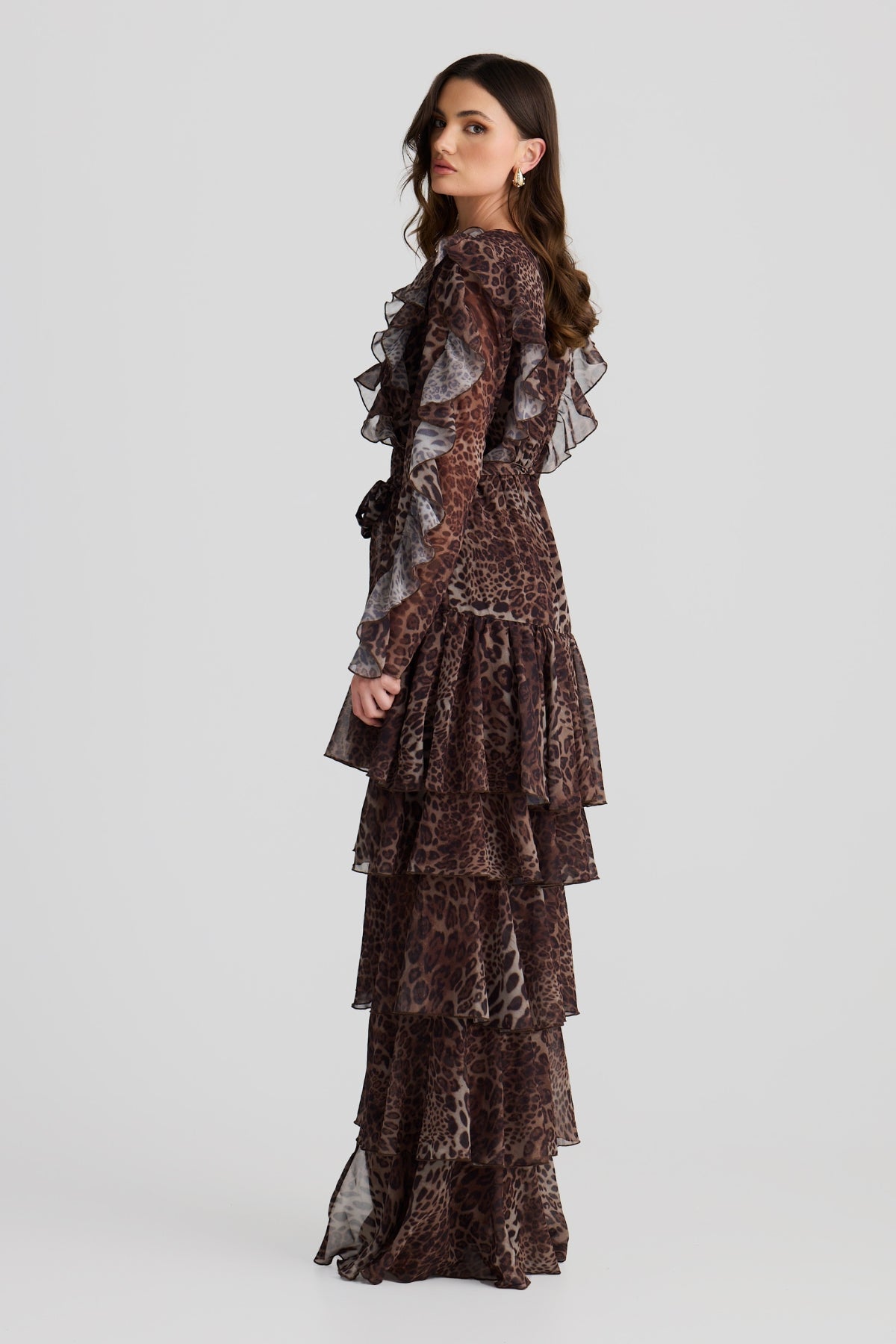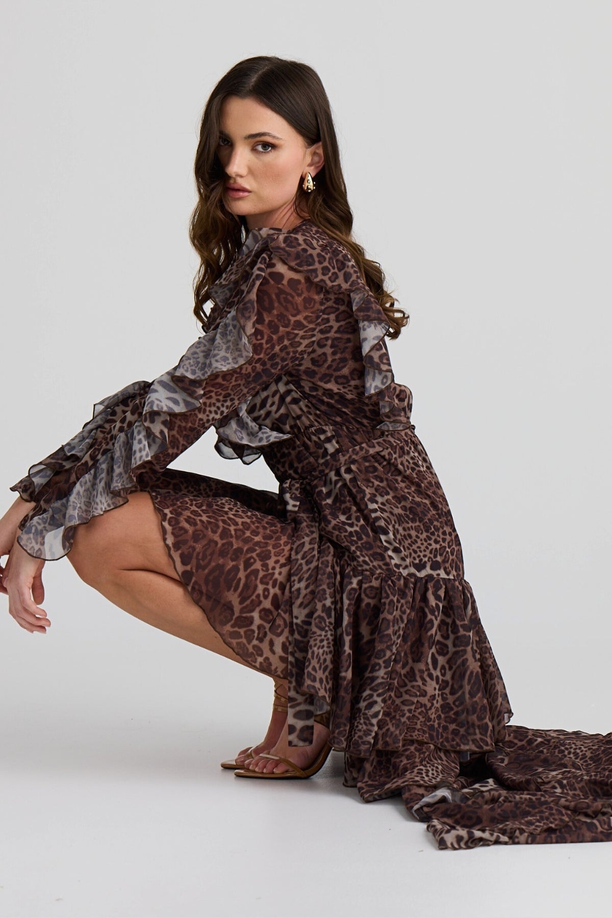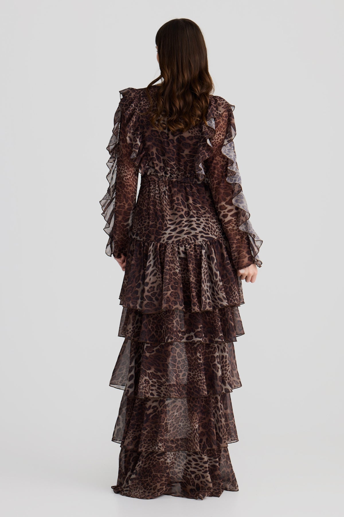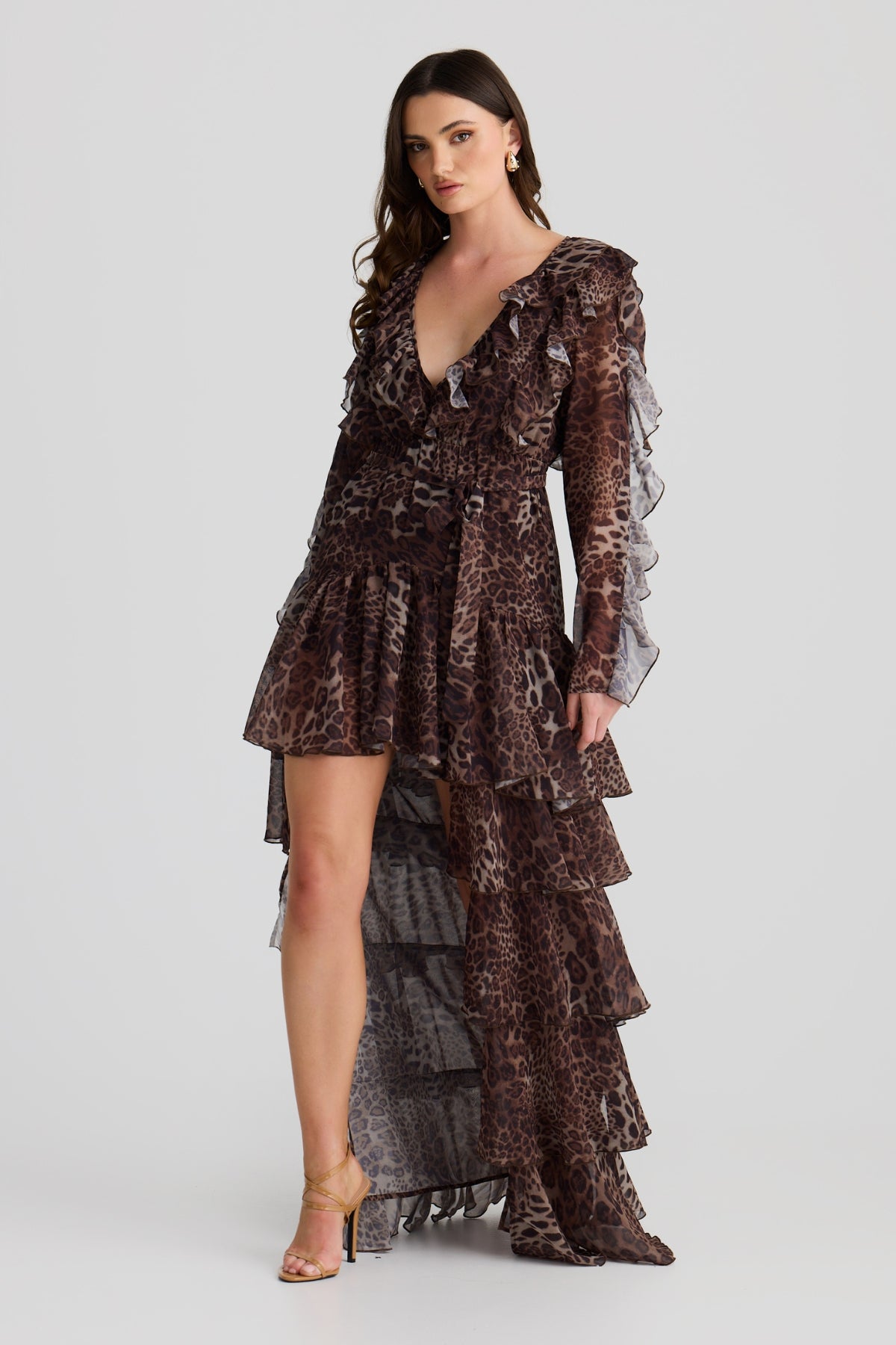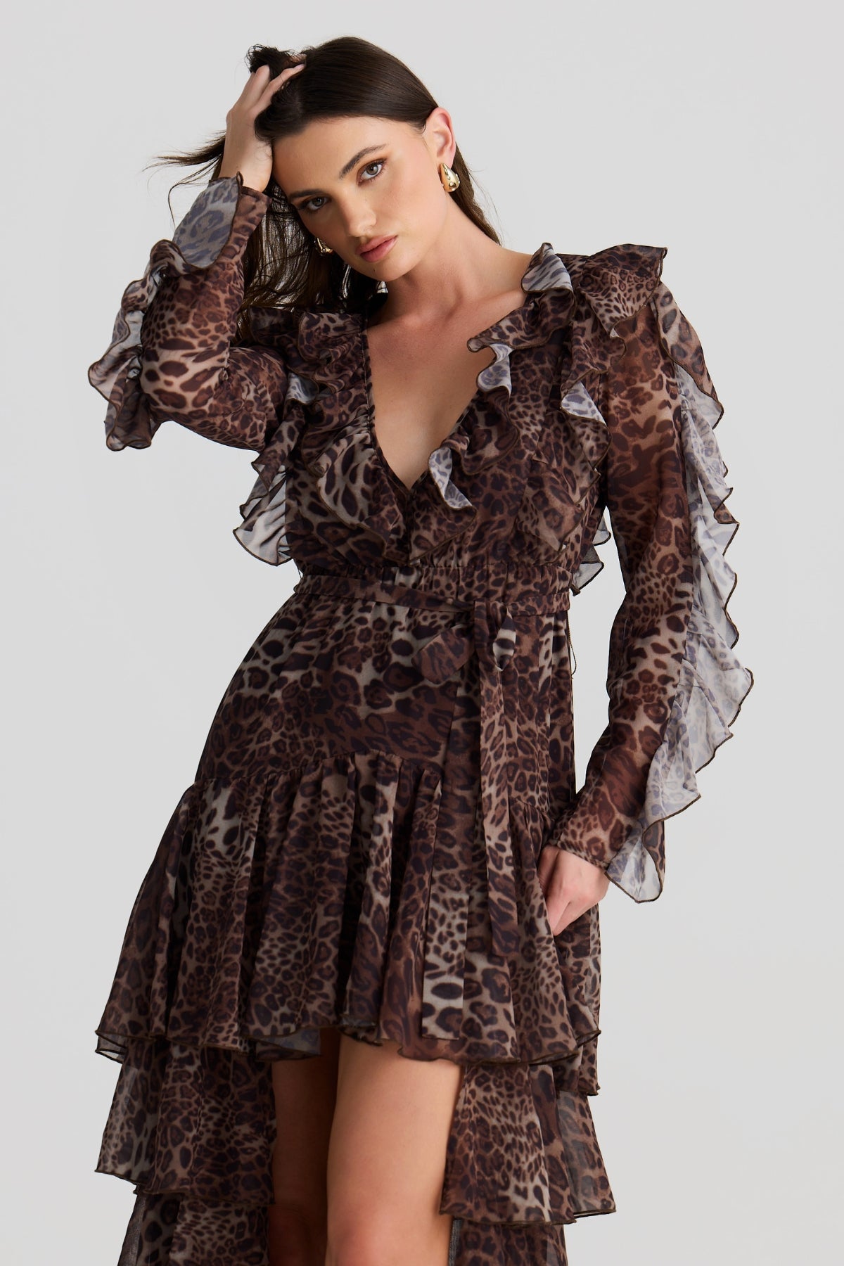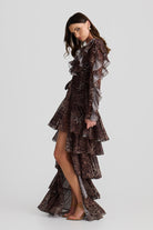 Embrace your free spirit with the Solana floaty chiffon Dress. Featuring this season's subtle leopard print that dances with every movement. The layered ruffles with a high-low design bring edge to a bohemian flare. Ideal for warm-weather adventures or layered with boots in winter, this dress is a must-have for your wardrobe.